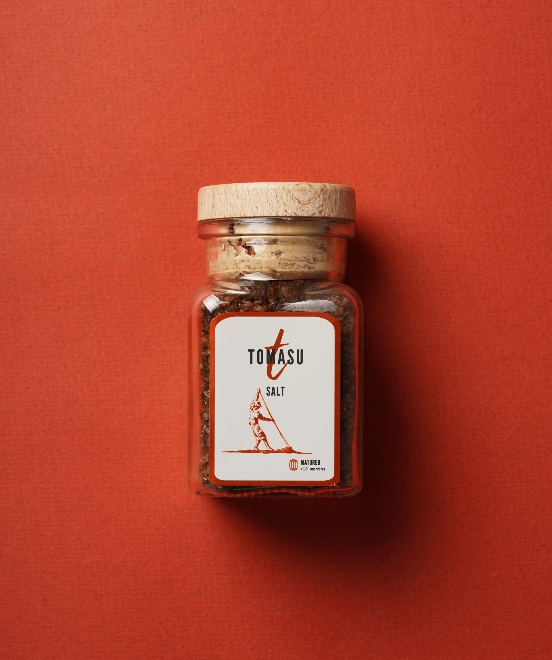 Tomasu Salt, is gemaakt van gros sel de Guérande, handgeoogst in Bretagne, Frankrijk. Omdat dit zout een van onze vier basisingrediënten is, was het een logische stap om een met sojasaus doordrenkt zout te creëren. We vullen vaten met het zout en voegen daar versgeperste sojasaus aan toe. Zo kunnen de smaken langzaam over 12 maanden samensmelten en rijpen, wat resulteert in een uniek smaakvol zout.
